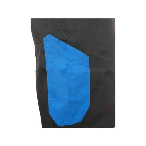 Férfi dungarees rövidnadrág, derékrész övhurokkal, elülső zsebek, oldalzseb hajtókával, összecsukható/mérőszalag zseb, jobb oldalon egy hátsó zseb. Méret: 46 - 64 Szabványok: EN ISO 13688 Öltönykollekció: CXS PHOENIX Anyagösszetétel: 65% poliészter 35% pamut Súly: 190 g/m2 Szín: szürke-kék
