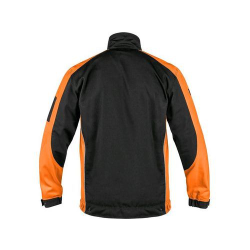 Fekete-narancssárga szerelőkabát fényvisszaverő elemekkel. Nagy mellső zsebekkel, és azokon elhelyezett kisebb, telefontartó zsebbel és cipzáras zsebbel, valamint praktikus műanyag akasztóval a munkához szükséges különböző tárgyak elhelyezéséhez. Az oldalsó cipzáras zsebek zárása megakadályozza a tárgyak véletlen kiesését a zsebből. Állítható mandzsettával végződő ujjak. Rejtett cipzáras és patentkapcsos rögzítés a nyakon. Anyaga poliészter 65%, pamut 35% Az EN ISO 13688 szabvány meghatározza a védőruházatra vonatkozó általános követelményeket az ergonómia, hibátlanság, méretjelölés, elhasználódás, kompatibilitás, védőruházat jelölés és információk szempontjából, melyeket a gyártó biztosít a védőruházatokkal együtt.