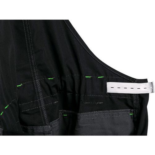Férfi kantáros overál - rövidített változat 170-176 cm magassághoz. Mellkasi zseb fedéllel, derékon övbújtatókkal, hátul gombbal ellátott gumipánt a méretállításhoz, elöl paszpólos zsebek, mindkét oldalon multifunkcionális zsebek, 600D poliészterrel megerősített térdek térdvédő behelyezésének lehetőségével, két hátsó zseb fedéllel, 600D poliészterrel megerősített szárak alsó része, hátul rugalmas nadrágtartók, fényvisszaverő kiegészítők. Ajánlott felhasználás: építőipar, gépészet, könnyűipar, autóipar, logisztika, raktározás, szállítmányozás, autószervizek, karbantartás, összeszerelés, mezőgazdaság, kert, hobbi. Külső anyag: 65% poliészter 35% pamut Fényvisszaverő kiegészítők: Igen OEKO-TEX® STANDARD 100: Igen Méret: 44-64