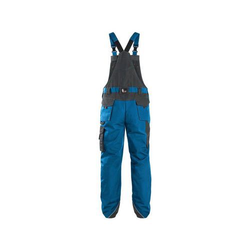 Férfi overál kantáros, zsebfedős mellzsebbel, övbújtatós derékkal, hátul gombbal ellátott gumival a méretállításhoz, elöl paszpólos zsebekkel, mindkét oldalon multifunkcionális zsebekkel, 600D poliészterrel megerősített térdekkel, térdvédő behelyezésének lehetőségével, két hátsó zseb zsebbel, 600D poliészterrel megerősített alsó szárrész, hátul rugalmas nadrágtartók, fényvisszaverő kiegészítők. Ajánlott felhasználás: építőipar, gépészet, könnyűipar, autóipar, logisztika, raktározás, szállítmányozás, autószervizek, karbantartás, összeszerelés, mezőgazdaság, kert, hobbi. Külső anyag: 65% poliészter 35% pamut Fényvisszaverő kiegészítők: Igen OEKO-TEX® STANDARD 100: Igen Méret: 46-64