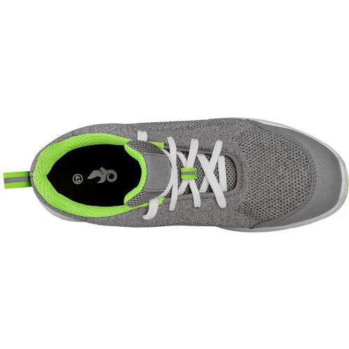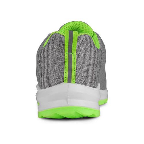 Munkacipő GreenUp® textil felsőrésszel és fényvisszaverő kiegészítőkkel. A cipő újrahasznosított anyagok kombinációjából készült, amelyek új életet adnak a műanyag palackoknak. Egy darab cipő előállításához 20 PET palackot használtak fel. A cipő teljesen fémmentes (fém alkatrészek nélkül). Anyag: GreenUp® textil felsőrész újrahasznosított poliészterből, amely 30 °C-on mosható, mikroszálas erősítésű elülső rész, lélegző hálós bélés újrahasznosított poliészter szálból, belső sarokerősítés mikroszálas anyaggal. Talp: PU - PU, csúszásmentes, olajálló, antisztatikus. Anyagösszetétel: Újrahasznosított poliészter Védettségi fok: O1 Védelem: Megerősített lábujj nélkül Fényvisszaverő kiegészítők: Igen Méret: 36-48