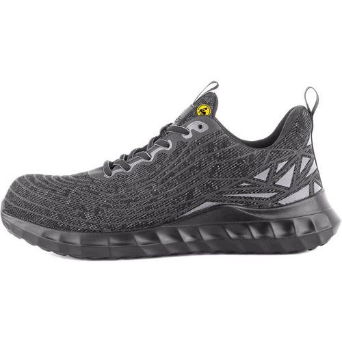 ESD munkacipő textil felsőrésszel és fényvisszaverő kiegészítőkkel. Anyag: tartós és lélegző 2,0 mm-es poliészterből készült hálós felsőrész, 30 °C-ig mosható, PU kiegészítők, lélegző nem szőtt anyagból készült bélés, belső mikroszálas sarokerősítés, talp: PU, csúszásgátló, olajálló, antisztatikus. Védettségi fok: O1 Védelem: Megerősített lábujj nélkül Fényvisszaverő kiegészítők: Igen Méret: 36-48 ESD