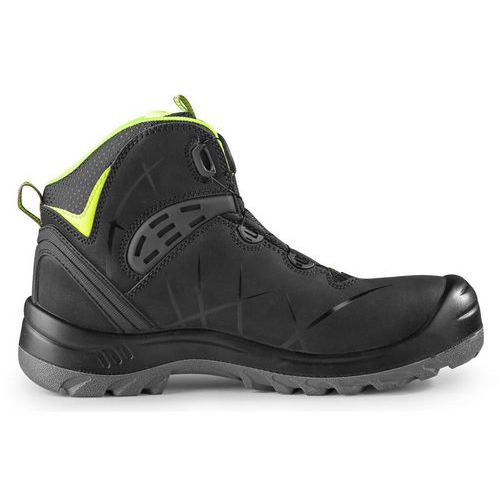Biztonsági bokacsizma, bőr, műanyag orrmerevítővel és Dyna-Flex® talppal, fényvisszaverő kiegészítőkkel. Speciális húzórendszerrel a csizma gyors meghúzása és lazítása érdekében. Anyag: 1,6 - 1,8 mm-es hasított nubuk bőr felsőrész (egy darabból), külső PU orrmerevítő és TPU sarokvédelem, bélés légáteresztő, kopásálló anyagból, talp: PU-PU, olajálló, antisztatikus, csúszásgátló és átszúrásálló. Védettségi fok: S3S Védelem: Megerősített lábujj- és talpbetéttel Fényvisszaverő kiegészítők: Igen Méret: 37-48
