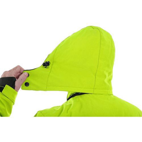 Férfi szigetelt softshell kabát, víz- és szélálló, hónalj szellőző, levehető kapucni, állítható ujjú mandzsetta és elasztikus mandzsetta, alján húzózsinór, fekete fényvisszaverő cső, TPU membrán, anyagállóság p Méret: XS-4XL Szezon: Tél Külső anyag: 96 % poliészter, 4% elasztán Bélés: 100% poliészter - gyapjú Vízálló: 10 000 mm Páraáteresztő képesség: 3 000 g/m2/24h TPU membrán: IGEN Szigetelés: 100% poliészter, 150 g/m2 Fényvisszaverő kiegészítők: Igen