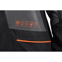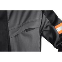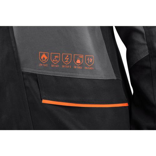 Férfi védőkabát, antisztatikus, állandó lángálló PROBAN védelemmel és 6-os és PB [6] típusú folyékony vegyszereknek ellenálló kezeléssel. Feszültség alatti munkavégzésre is alkalmas az EN 61482 szabvány szerint. Fedett cipzár és tépőzáras rögzítés, állítható mandzsettás ujj, 4 elülső zseb, cipzáras belső mellzseb. A fényvisszaverő kiegészítők növelik a biztonságot korlátozott látási viszonyok között. Ajánlott felhasználás: hegesztők, petrolkémiai ipar, energia-, gáz- és finomítóipar, feszültség alatti munkavégzés, szélerőműveken végzett munka. A ruhadarab csak akkor felel meg a fenti szabványoknak, ha a teljes blúz + nadrág szettet viselik. Fényvisszaverő kiegészítők: Igen Méret: 46-64