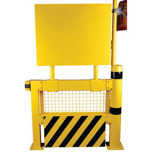 Aláfutásgátló acél védőpanel biztonsági terelőkhöz, ideális terek lezárására és kisebb tárgyak tárolására. Jó láthatóság a közlekedésbiztonsági sárga színének köszönhetően. Egyszerű telepítés: közvetlenül a biztonsági terelőre rögzíthető. Beltéri használatra.
