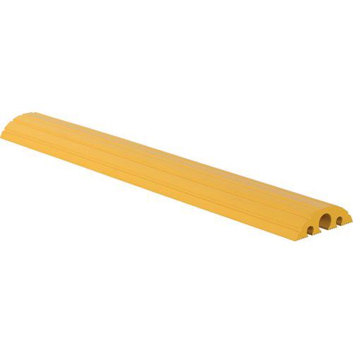 Moduláris kábelhíd védőburkolattal. A modulok a fülekkel egyszerűen és biztonságosan összeszerelhetők. Tömör fekete újrahasznosított gumi robusztus PE fedéllel. Anyagában színezett gumi: ellenáll a hidegnek és a nagy teherbevételnek. Profilozott nút a könnyű átvezetéshez. Gyors és egyszerű összeszerelés 1 személy által, könnyen mozgatható fogantyú segítségével. Max. terhelés (t) : 40 t