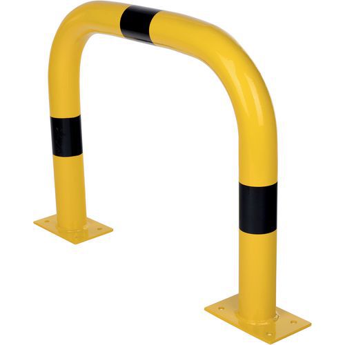 Nagy teherbírású acél védőkorlát berendezések vagy gépek anyagmozgató berendezések okozta sérülések elleni védelmére. Jó láthatóság a sárga-fekete kétszínű kivitelnek köszönhetően. Beltéri és kültéri használatra egyaránt alkalmas.