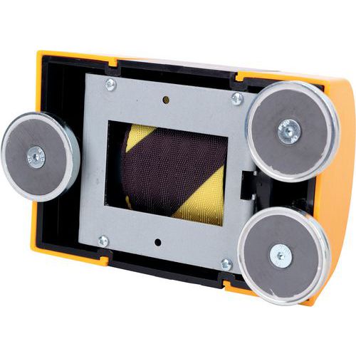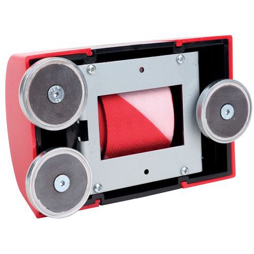 Fali tekercs mágneses szalaggal egy terület lezárásához vagy a bejutás korlátozásához. Könnyű rögzítés a 3 mágnesnek köszönhetően. Kizárólag beltéri használatra. Jó láthatóság a színes csíkozásnak köszönhetően. Egyenként 90 N erejű mágnesekkel. A tok méretei: 143 x 118 x 85 mm.