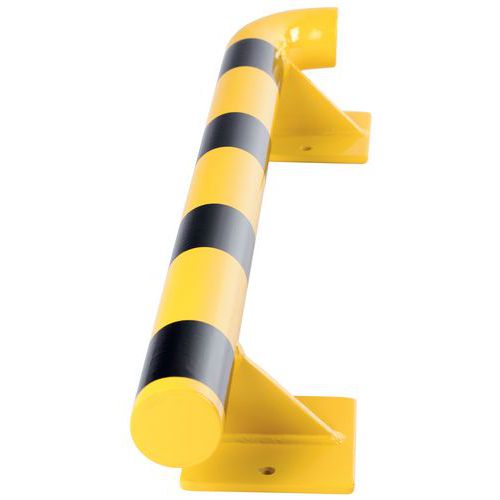 Robusztus, acél fali védőütköző. Jól látható a sárga-fekete színnek köszönhetően. Horganyzott acél a nagyobb kopás- és korrózióállóság érdekében. Könnyen felszerelhető a sínes szerelőlappal. 195 x 120 mm-es talplemez.