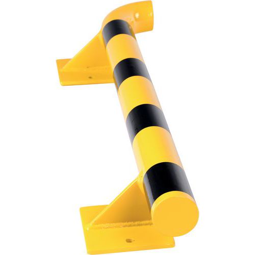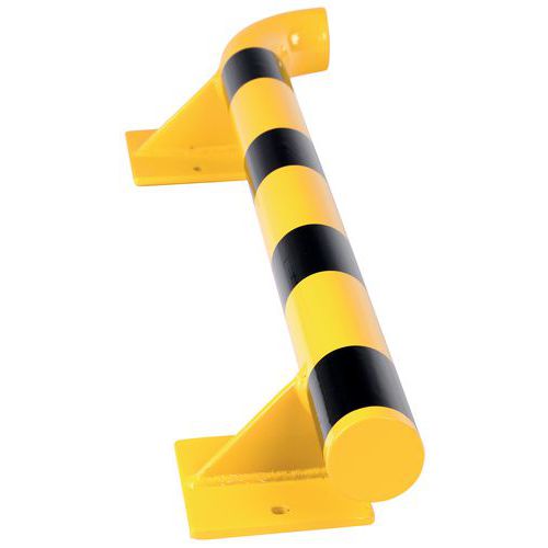 Robusztus, acél fali védőütköző. Jól látható a sárga-fekete színnek köszönhetően. Horganyzott acél a nagyobb kopás- és korrózióállóság érdekében. Könnyen felszerelhető a sínes szerelőlappal. 195 x 120 mm-es talplemez.