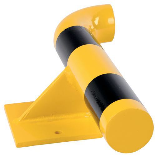 Robusztus, acél fali védőütköző. Jól látható a sárga-fekete színnek köszönhetően. Horganyzott acél a nagyobb kopás- és korrózióállóság érdekében. Könnyen felszerelhető a sínes szerelőlappal. 195 x 120 mm-es talplemez.