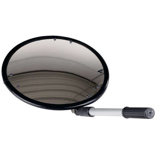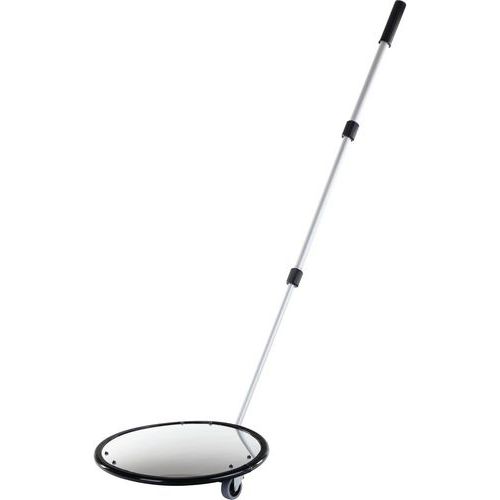 Tükör járművek ellenőrzéséhez beléptetésnél vagy gépek vizsgálatához. Kapható világítással és anélkül, kerekes és kerék nélküli kivitelben. 40-110 cm hosszú teleszkópos alumínium karral felszerelve. Puha poliuretán futófelületű görgőkkel és golyóscsapágyakkal a könnyű használat érdekében. TÜV tanúsítvánnyal.