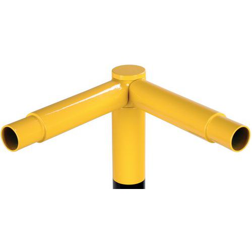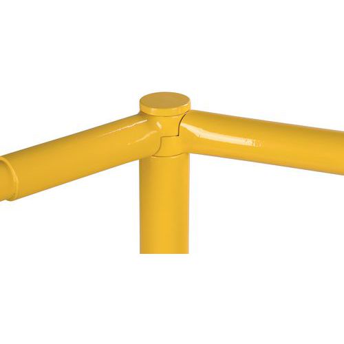 Oszlop moduláris védőkorláthoz. Garantált stabilitás a rögzítőlapnak köszönhetően. Horganyzott, kültéri használatra. Jó láthatóság a közlekedésbiztonsági fekete csíkos sárga színnek köszönhetően. Könnyű telepítés. A rendszer egyes elemei csavar nélkül rögzíthetők.