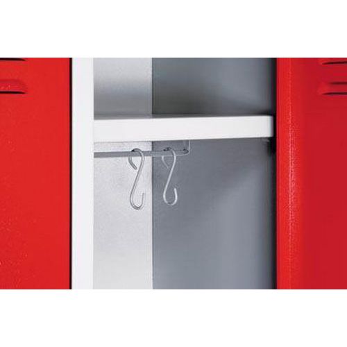 A hegesztett öltözőszekrények két önállóan zárható részből állnak, és paddal egészíthetők ki.
