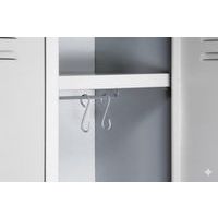 A hegesztett öltözőszekrények két önállóan zárható részből állnak, és paddal egészíthetők ki.