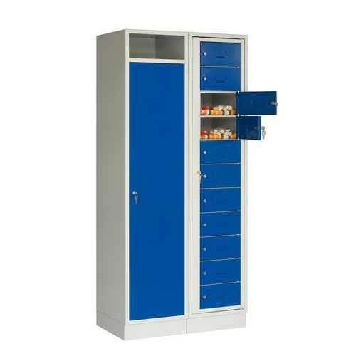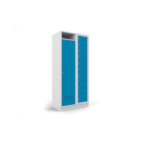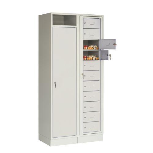 - A szekrény és az egyes rekeszek zárása hengerzárral. Központi zárási lehetőség a szekrénykereten.