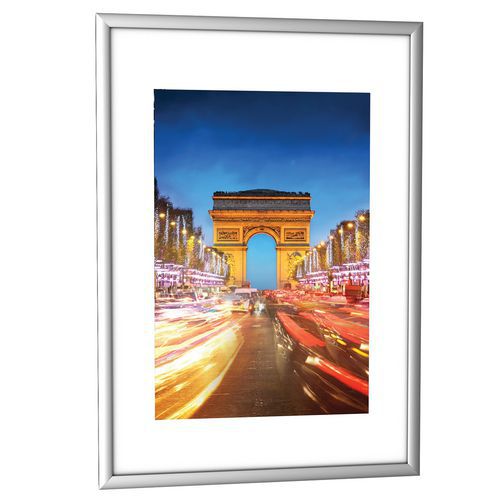 A4-es dekoratív keret, amely álló vagy fekvő helyzetbe is elhelyezhető. Asztalra helyezhető állvánnyal rendelkezik. Stílusos kialakítás, tökéletes fotók vagy poszterek keretezéséhez. 9 mm-es eloxált alumínium keret plexi előlappal. Rögzített 3 mm-es hátlap. Összeszerelve érkezik, könnyen telepíthető.