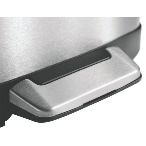 Elegáns kialakítású lépcsős kuka porszórt acélból, csiszolt rozsdamentes acél fedéllel és pedállal. Halkan záródó fedéllel, műanyag béléssel és fogantyúval a hátoldalon.