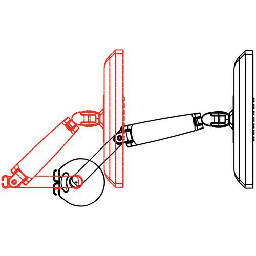 Magasságállítási tartomány: 150-400 mm. Kompatibilis a VESA-val: 75 x 75 mm és 100 x 100 mm. Terhelhetőségi tartomány (min. max.): 3,5-8,5 kg. A feszültséget az LCD különböző súlyainak megfelelően állítjuk be. Ideális otthoni munkához