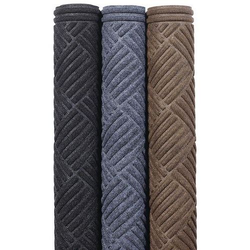 Robusztus bejárati szőnyeg szabadalmaztatott Aqua Dam kialakítással, 4 textilborítású, megerősített szőnyegszegéllyel, amely visszatartó tálcaként működik, és négyzetméterenként akár 4 liter vizet is képes megtartani. A szabadalmaztatott, nem irányított, barázdált gyémánthegyes kialakítású, fröccsöntött textilfelület kettős hatást fejt ki a szennyeződések lekaparására és letörlésére. A masszív gumitalp maximális ellenállást biztosít. A talp alatti csapok minimalizálják a szőnyeg mozgását minden felületen, és megemelik a szőnyeget, hogy a nedves padló megszáradhasson a szőnyeg alatt is.