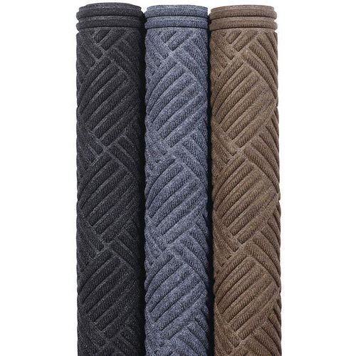 Robusztus bejárati szőnyeg szabadalmaztatott Aqua Dam kialakítással, 4 textilborítású, megerősített szőnyegszegéllyel, amely visszatartó tálcaként működik, és négyzetméterenként akár 4 liter vizet is képes megtartani. A szabadalmaztatott, nem irányított, barázdált gyémánthegyes kialakítású, fröccsöntött textilfelület kettős hatást fejt ki a szennyeződések lekaparására és letörlésére. A masszív gumitalp maximális ellenállást biztosít. A talp alatti csapok minimalizálják a szőnyeg mozgását minden felületen, és megemelik a szőnyeget, hogy a nedves padló megszáradhasson a szőnyeg alatt is.