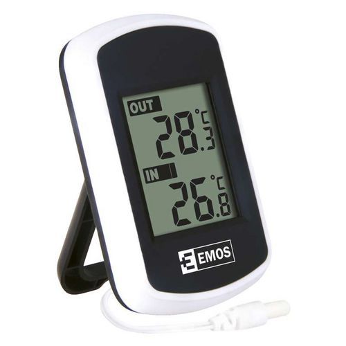 - A digitális hőmérő a kijelzi a beltéri és a kültéri hőmérsékletet a 2 m hosszú vezetékes érzékelővel.