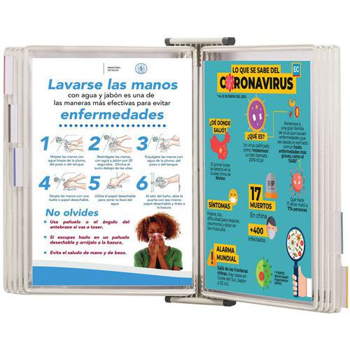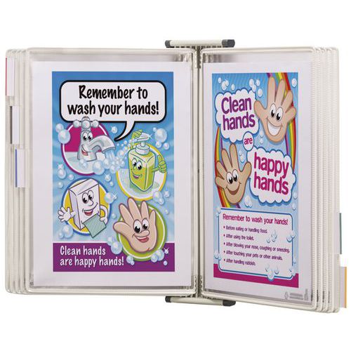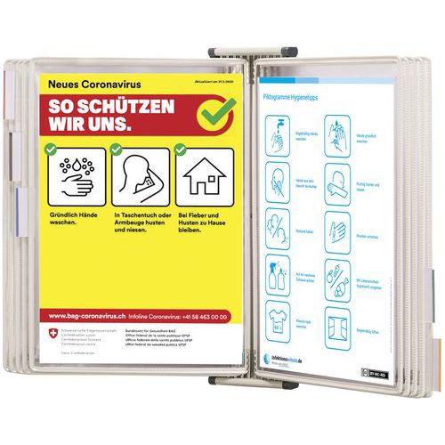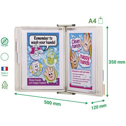A csomag tartalma: - 1 db akasztókonzol, - 10 forgó zseb, - 5 indexkártya. A falra szereléshez szükséges csavarok, tiplik és távtartók mellékelve vannak.