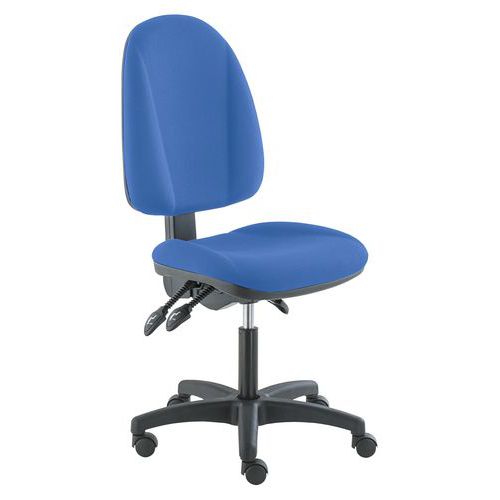 Kárpitozott irodai szék aszinkron mechanikával, az ülőlap és a háttámla dőlésszöge beállítható. Az ülésmagasság gázrugóval állítható. Az irodai szék puha padlófelületre alkalmas görgőkkel rendelkezik. Négy színváltozatból választhat. A forgószék teherbírása 120 kg.