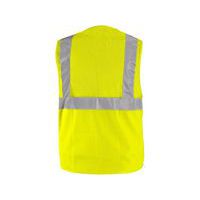 Figyelmeztető mellény fényvisszaverő csíkokkal a test körül és a vállakon.