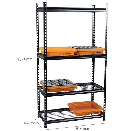 | Termék neve | Dróthálós polc kármentő tálcákkal Manutan Expert, 1 674 x 914 x 457 mm |