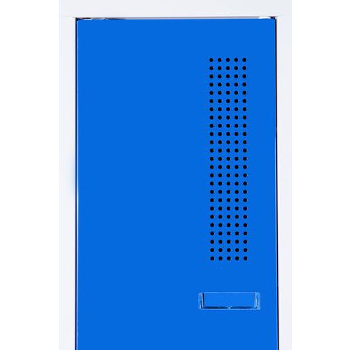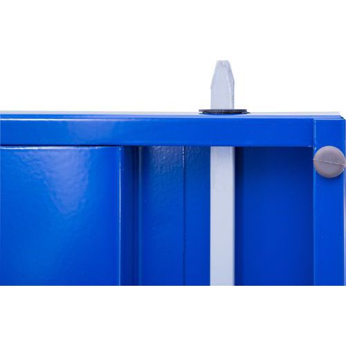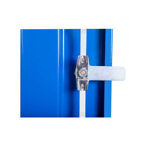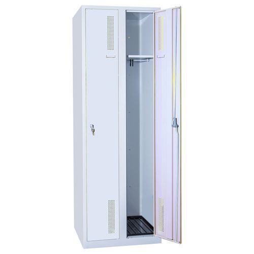 A hegesztett öltözőszekrények magas szintű biztosítással a lopásokkal szemben két önállóan zárható részből állnak.
