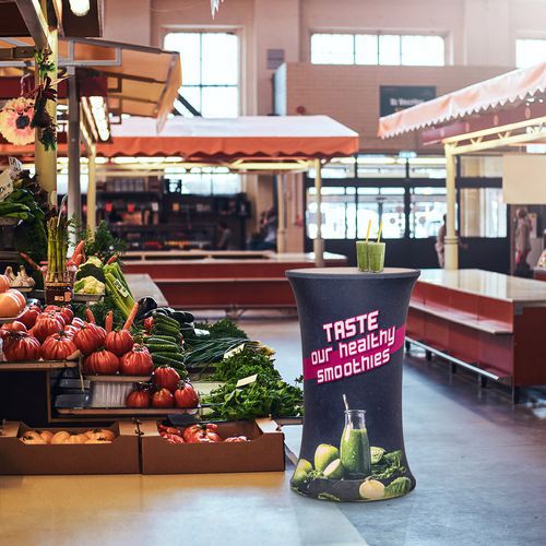 A Counter Easy Oval modern és elegáns megjelenést kölcsönöz bármilyen prezentációnak. A varratmentes textilgrafika sima és prémium vizuális hatást biztosít. Könnyű szerkezetének és szállítótáskájának köszönhetően könnyen mozgatható az események között. Ideális kiállításokra, promóciós standokra és kiskereskedelmi rendezvényekre.