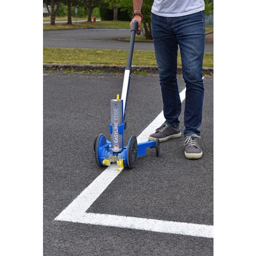 Easyline Edge színekhez készítve. Lehetővé teszi az 50, 75 és 100 mm széles, azonos hosszúságú éles vonalak gyors és tiszta kijelölését. Szabadalmaztatott levegőáramlási technológia az élesebb vonalakért. A kocsi cserélhető védőburkolatokkal rendelkezik, melyek korlátozzák a spray szétszórását. A hátsó görgők állíthatók, így lehetővé teszik a jelölést a falak és polcállványok közelében. Kioldó mechanizmus a fogantyún. Egy 750 ml űrtartalmú spray elegendő 80-120 m jelölésre a vonal vastagságától függően. A palackot felrázni
