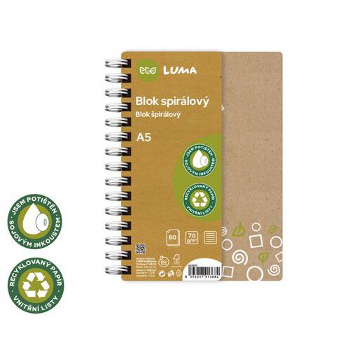 | Termék neve | ECO LUMA gyűrűs jegyzettömb, 80 lap, A5 |