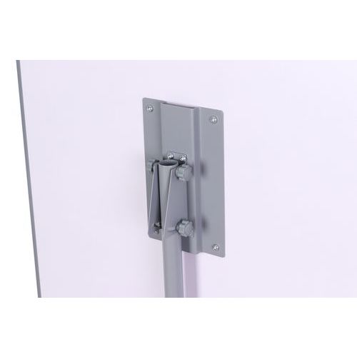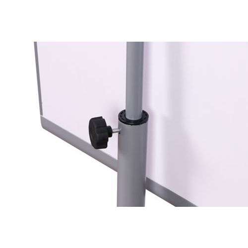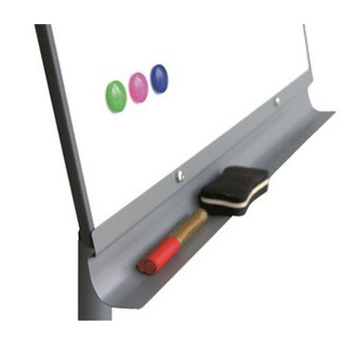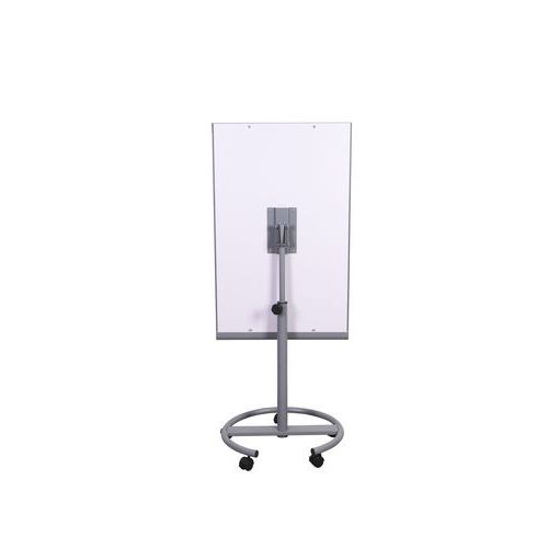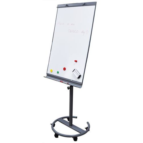 Mágneses felületű mobil flipchart tábla. Folyamatosan állítható akár 190 cm magasságig. Öt kerekének köszönhetően forgatható és mozgatható. A fém szerkezet része egy tartozék filctároló léc. A 100 x 65 cm lap lakkozott bádoglemezből készül. A papírblokkok két ergonomikus csavar segítségével rögzíthetők.