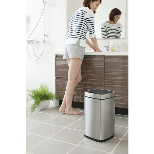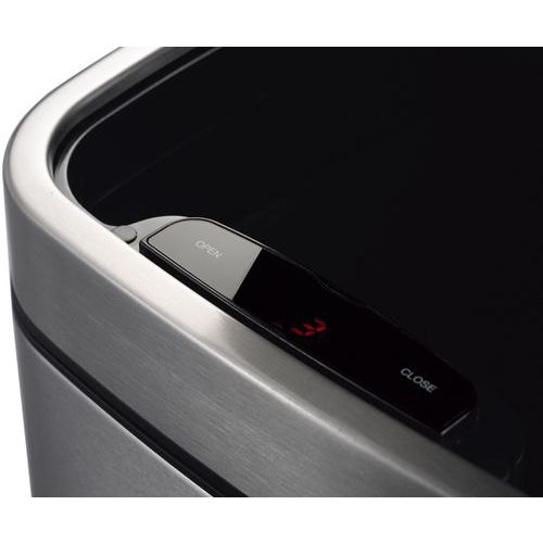 Elegáns négyzet alakú szemetes automatikus nyitásérzékelővel és szintetikus béléssel. Az Easy-clipnek köszönhetően a fedél a zsák cseréjekor és tisztításkor a kuka oldalára rögzíthető. Az érzékelő 4x AA elemmel működik (nem tartozék).
