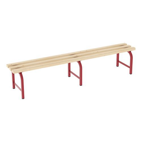 A hegesztett öltözőpad ideális öltözők, tornatermek vagy más sportlétesítmények felszereléseként. Az ülőfelület 6 x 3,5 cm méretű fenyőlécekből készült. A szerkezete 3 x 3 cm és 2,5 x 2 cm acélprofilokból áll.