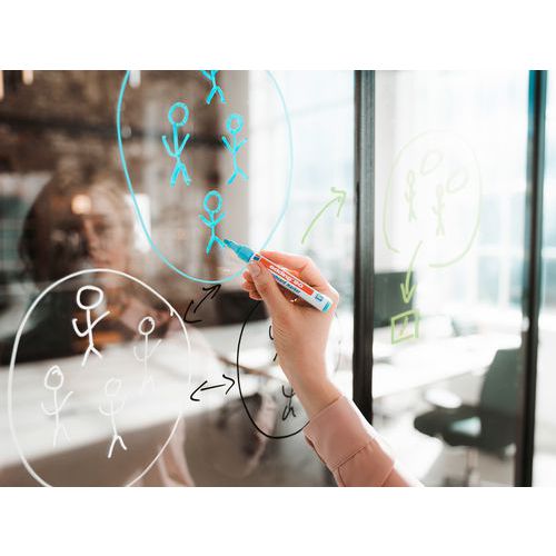 A feliratozók alkalmasak üvegre, üvegtáblákra és tükrökre, és kombinálják a táblai, illetve krétairónok előnyeit.