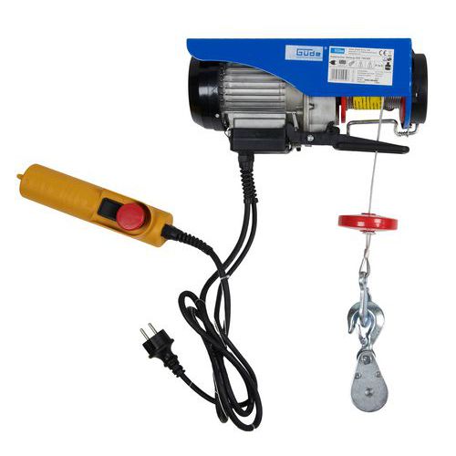 - Elektromos huzalos csigasor 200 kg alatti terhek emeléséhez és leengedéséhez, vezető csigával. A csörlő alaplapja acéllemezből készül porlakkos felületkezeléssel, a motorblokk és váltószekrény alumínium ötvözetből van, IP 54 védelmi fokkal. A huzalos csigasor motorjának teljesítménye 450 W, a tápfeszültség 230 V/50 Hz. Végütköző a teher biztonságos maximális emeléséhez. Vezető csigával és távirányítóval szállítjuk.