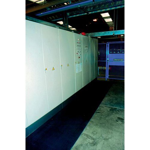 - Az elektromos szigetelő szőnyeg az áramütéssel szemben nyújt védelmet a dolgozóknak. Villamos elosztószekrények és magasfeszültségű berendezések közelében ajánlott az elhelyezése. A bordázott felület védelmet nyújt az elcsúszással szemben.