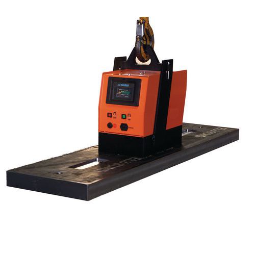 - Teheremelő mágnes lapos anyagok anyagmozgatására, a nehéz, vastag lemezek és blokkok emelésére. Egy hárompólusos lapos mágnes alkotja. Garantált maximális teherbírás az 50 mm-nél vastagabb anyagoknál és az aránylag lapos, megmunkált felületeknél. Az erős mágnes része egy kettős nyomógomb a RELEASE-KIOLDÁS funkcióhoz, és a kikapcsolás megakadályozásához felemelt terheléskor. A kézi infravörös távvezérlő lehetővé teszik a mágnes vezérlését akár 4,5 m távolságból is. Lemerült akkumulátor optikai és hangriasztása, illetve a mágnes nem kapcsolható be alacsony töltöttségű vagy lemerült akkumulátor esetén.