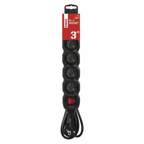 | Termék neve | Emos hosszabbító kábel kapcsolóval, fekete, PVC, 5 aljzat, 3 m |