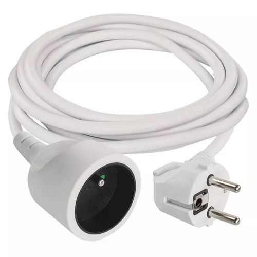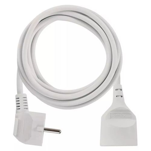A fehér hosszabbító kábel hálózati csatlakozóként szolgál ott, ahol a fali aljzat túl messze van. Gyermekvédelemmel. Vezeték keresztmetszete: 1,5 mm2.