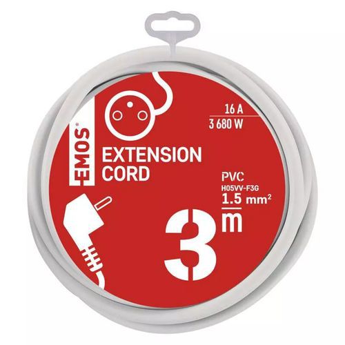 Emos hosszabbító kábelek, fehér, PVC, 1 aljzat