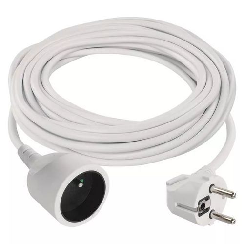 A fehér hosszabbító kábel hálózati csatlakozóként szolgál ott, ahol a fali aljzat túl messze van. Gyermekvédelemmel. Vezeték keresztmetszete: 1,5 mm2.