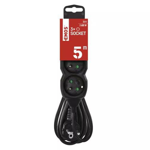 Emos hosszabbító kábelek, fekete, PVC, 3 aljzat Emos hosszabbító kábelek, fekete, PVC, 3 aljzat