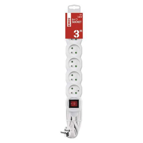 Emos hosszabbító kábel kapcsolóval, fehér, PVC, 6 aljzat, 3 m Emos hosszabbító kábel kapcsolóval, fehér, PVC, 6 aljzat, 3 m