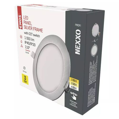 Emos NEXXO süllyesztett LED lámpa, kerek, 12,5 W, CCT kapcsolóval, ezüst Emos NEXXO süllyesztett LED lámpa, kerek, 12,5 W, CCT kapcsolóval, ezüst