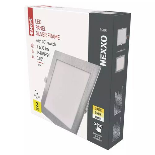 Emos NEXXO süllyesztett LED lámpa, négyzet alakú, 18 W, CCT kapcsolóval, ezüst Emos NEXXO süllyesztett LED lámpa, négyzet alakú, 18 W, CCT kapcsolóval, ezüst
